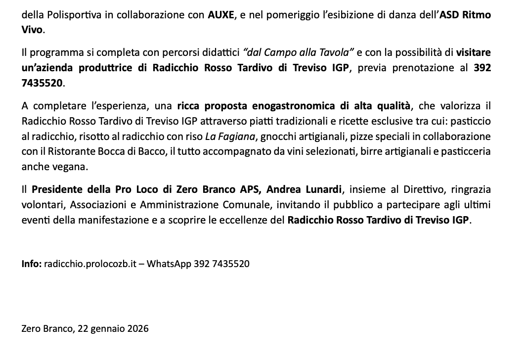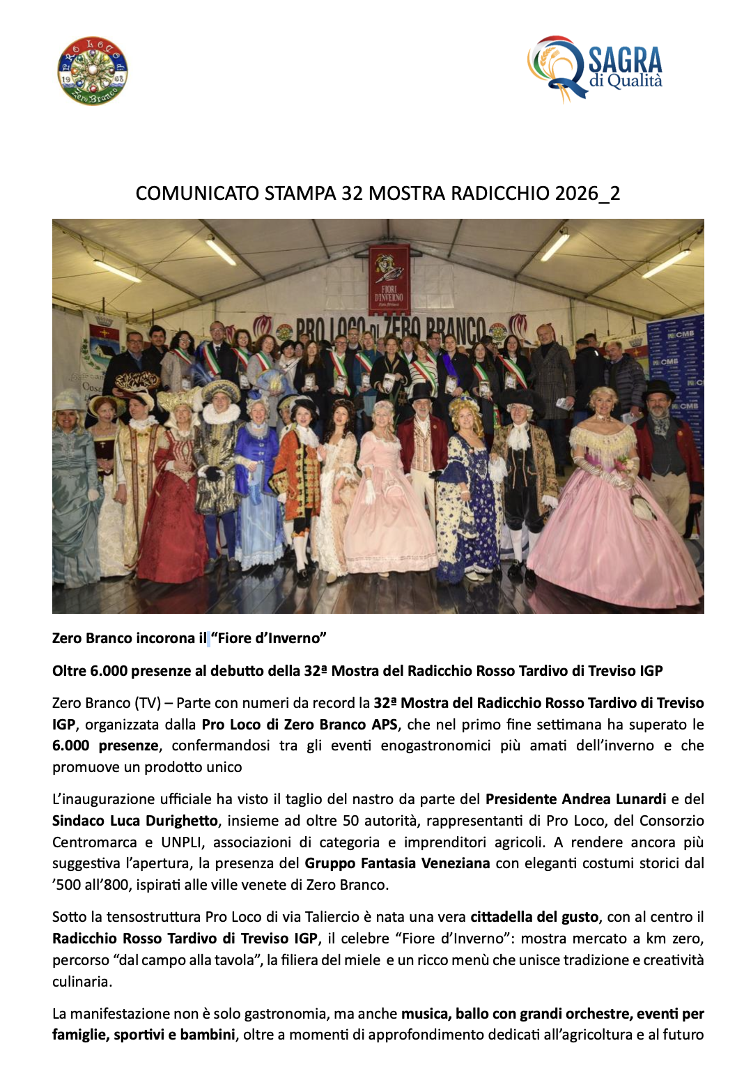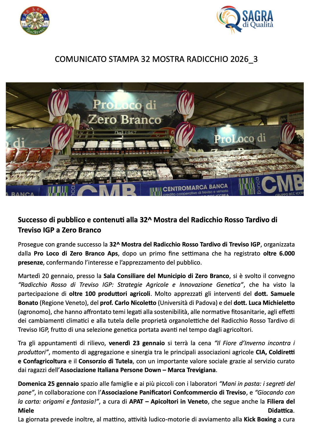 Comunicato Stampa: Successo di pubblico e contenuti alla 32^ Mostra del Radicchio Rosso Tardivo di Treviso IGP a Zero Branco